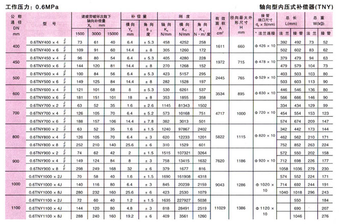 軸向型內(nèi)壓式波紋補(bǔ)償器(TNY)參數(shù)6